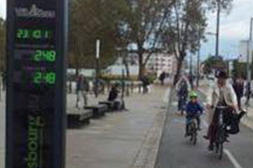 El Eco-tótem es una herramienta de visualización para los ciclistas y que forma parte visible del paisaje urbano. Cuenta con un diseño totalmente personalizable, luz de fondo opcional para la visibilidad en la noche, actualización de datos en tiempo real en Web Pública, fácil configuración a través de bluetooth.